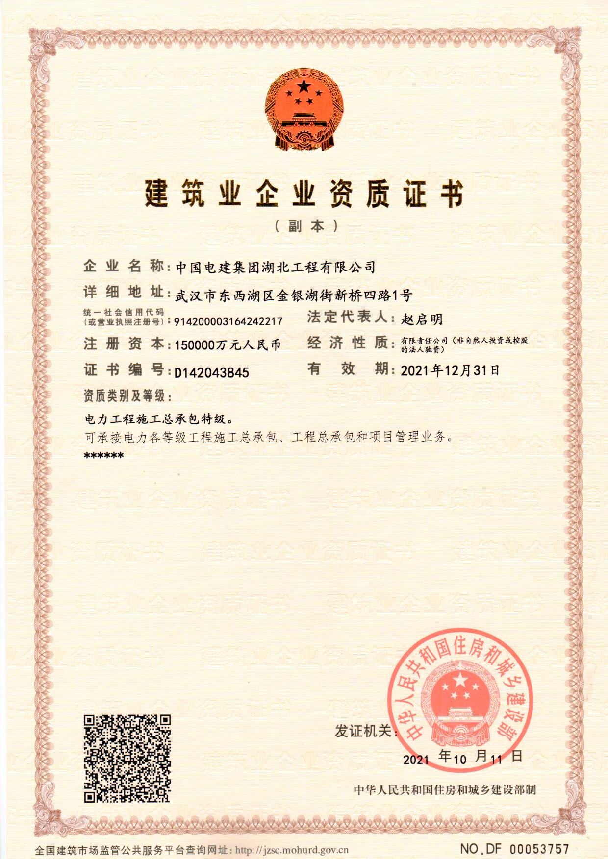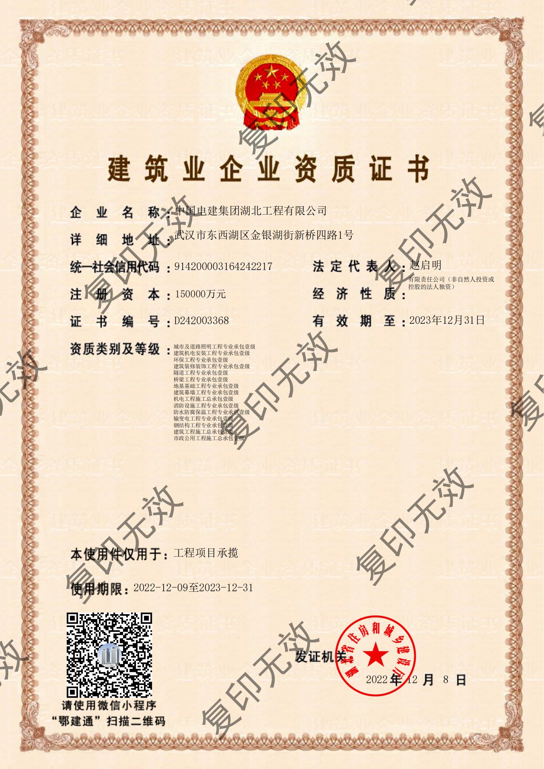 電力工程施工總承包特級